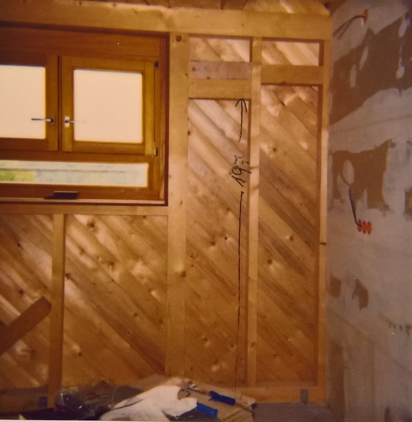 Selbstgebaut bis auf die nachstehend genannten Gewerke: Abriss eines alten Hauses, zusätzlicher Bodenaushub, Betonfundament, Abdichtungsarbeiten, Aufmauern der Kellerwände, Betonieren der Kellerdecke und abnahmepflichtige Arbeiten wie beispielsweise Elektro und Gasheizung (für sehr harte Winter zusätzlich zur Wärmepumpe). Die fossile Heizung war bisher nur zu den jährlichen Prüfzwecken in Betrieb.