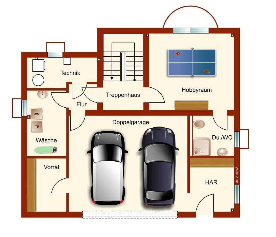 Bei diesem individuell geplanten, 2-geschossigen Haus auf einem Massiv-Keller mit integrierter Doppelgarage wurden spezifische Wohnwünsche realisiert.